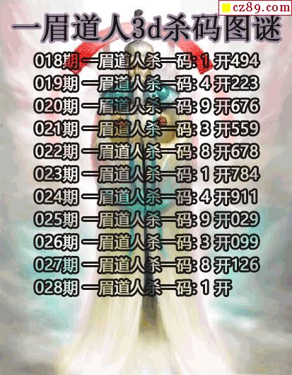 > 一眉道人杀码2026028期3d图谜(原创)